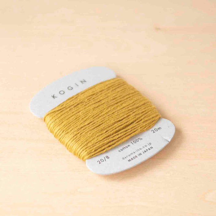 "Kogin" is a sashiko technique that was born in the Tsugaru region of Aomori Prefecture during the Edo period to reinforce and make fabrics warmer. Counting an odd number of stitches to match the vertical weave will create a beautifully patterned fabric. The characteristic of Kogin thread is that it has no luster, and when it is embroidered on cloth, the pattern emerges plumply. It is made with particular attention to the number of threads and the twist.